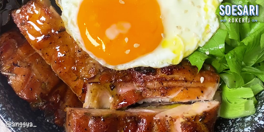 6. Platting dengan masukkan semua bahan dan tambahkan telur setengah matang serta saus gochujang