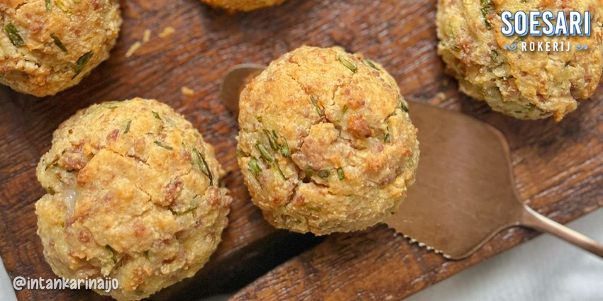 • Haluskan kacang almond, lalu masukkan baking powder, penyedap, dan parutan keju cheddar, aduk hingga rata