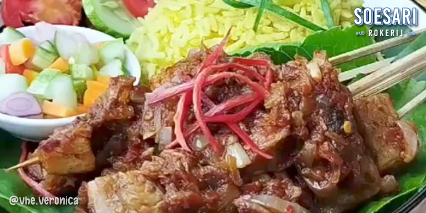 Masukkan potongan smoked chicken dan aduk hingga rata. Susun dengan tusuk sate