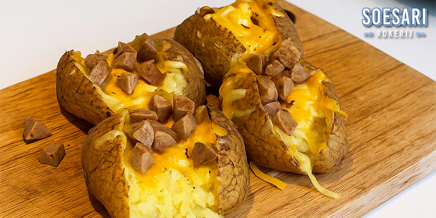 9. Terakhir tambahkan potongan Sosis Sapi Panggang Soesari Rokerij diatasnya dan Potato Jacket siap untuk disajikan