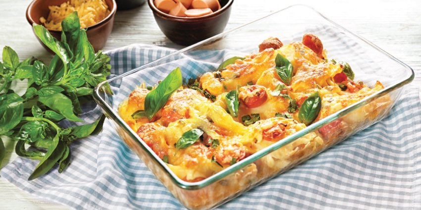 In a greased 2-qt. baking dish, layer half of the potatoes, soup mixture and sausage. Repeat layers.