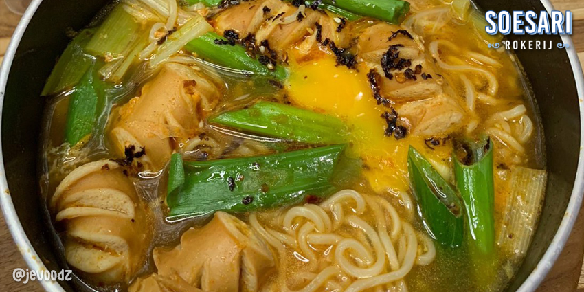 Masak semua bahan tadi, saus ramyeon, sawi putih, daun bawang, sosis dan mie. Setelah matang tambahkan telur, daun bawang lagi dan tabur kan bawang goreng.