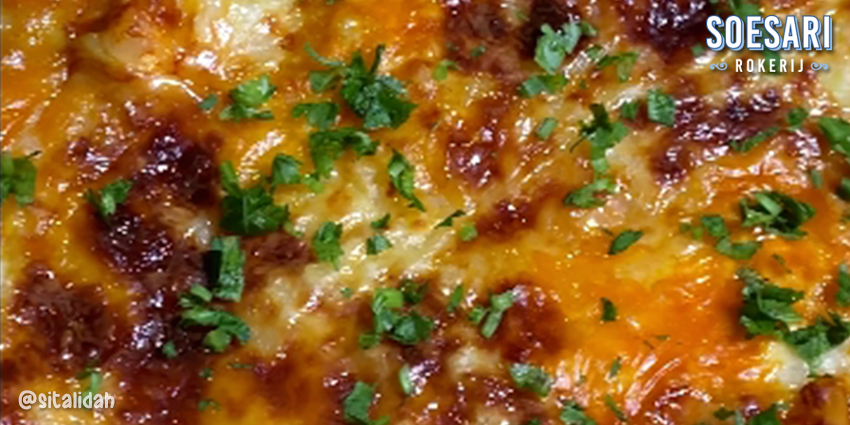 6. Angkat loyang dan beri taburan chopped parsley, sajikan selagi hangat