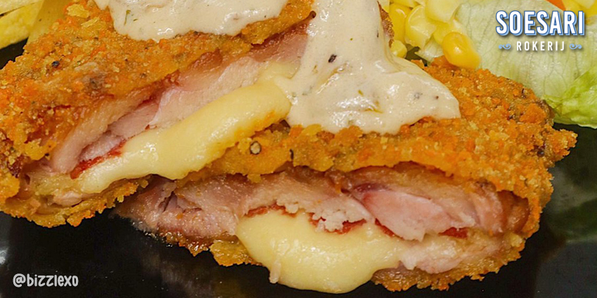 Smoked Chicken Cordon Blue siap di hidangkan bersama dengan cream sauce!
