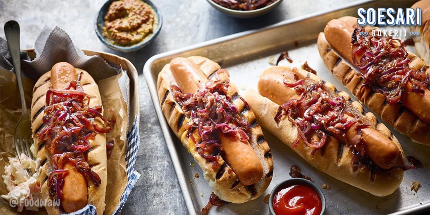 Zwarte-Peper Kipworst Hotdog siap dinikmati